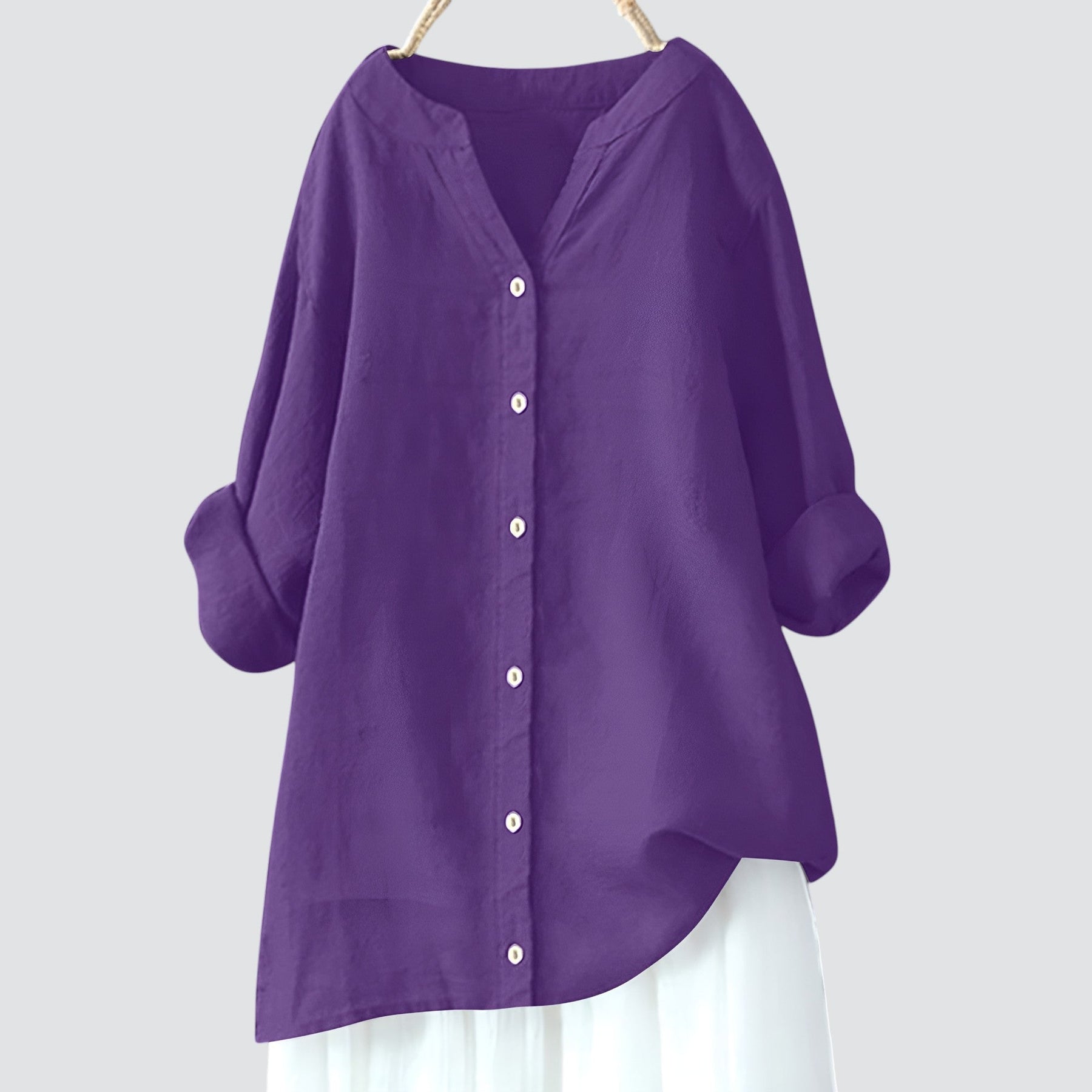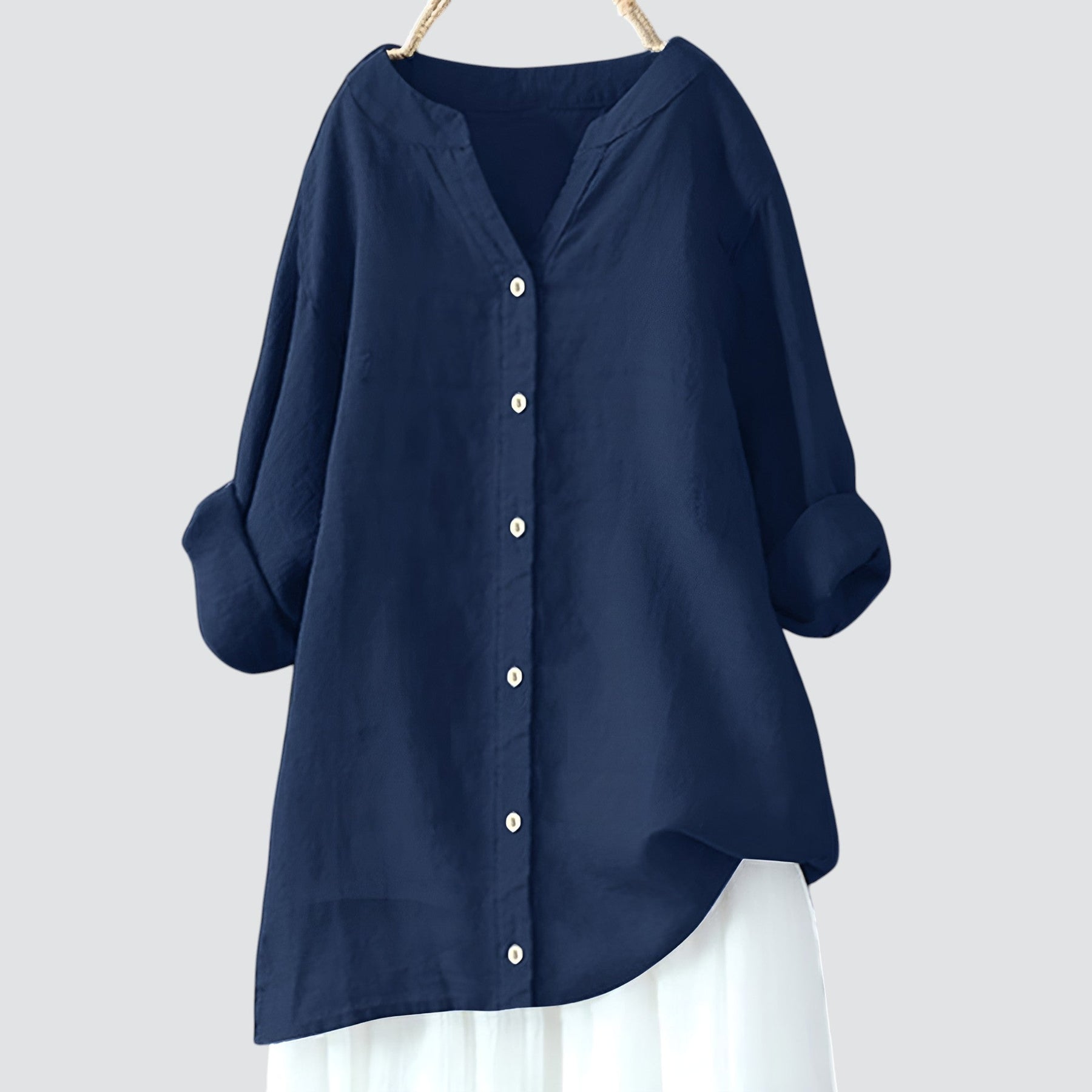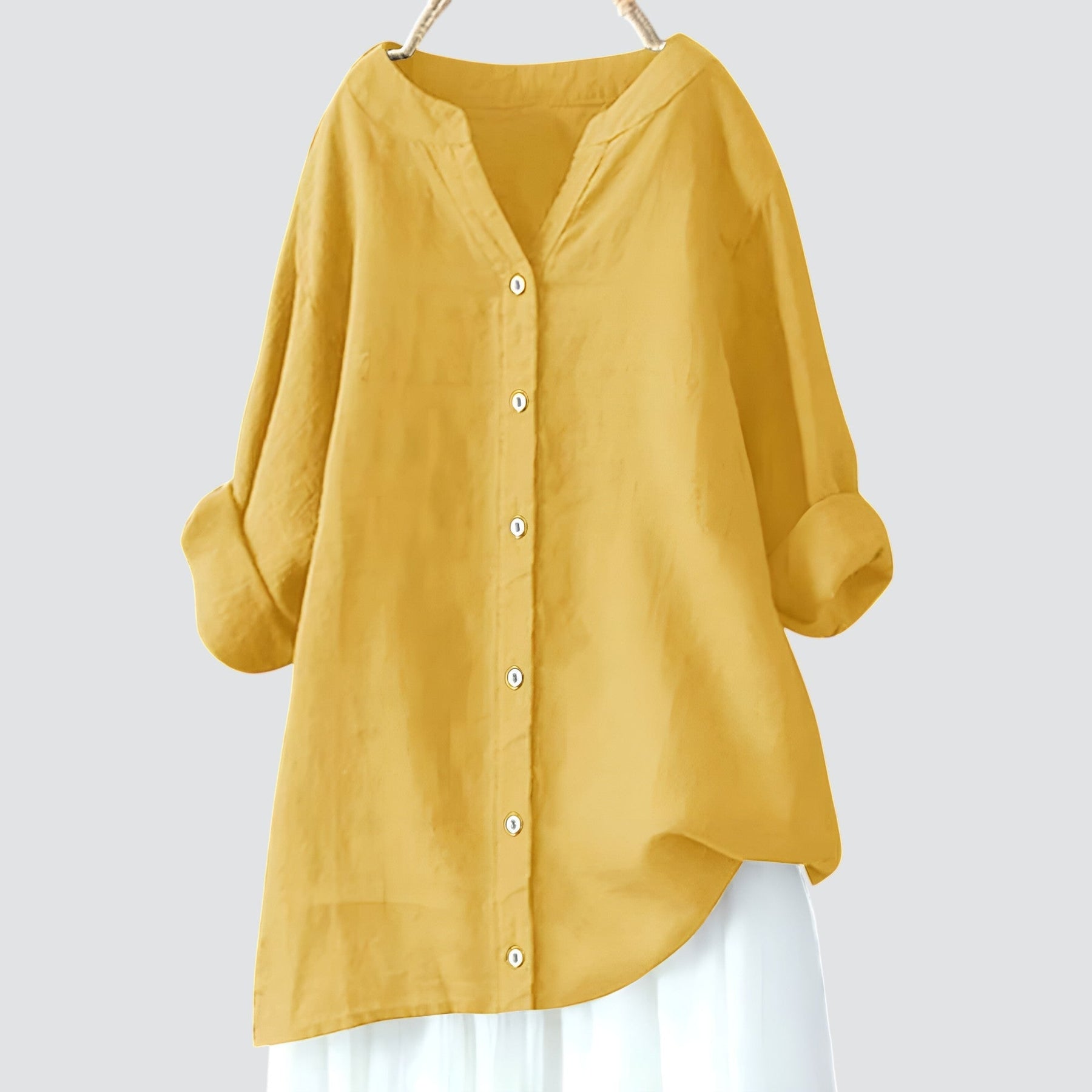 Vera-toppen er lavet af åndbart hør, som føles blødt og holder dig kølig på varme dage. Den løstsiddende pasform gør den nem at bevæge sig i, uden at den strammer. Uanset om du skal på stranden, gå en tur eller nyde en middag, passer denne top til både krop og anledning.