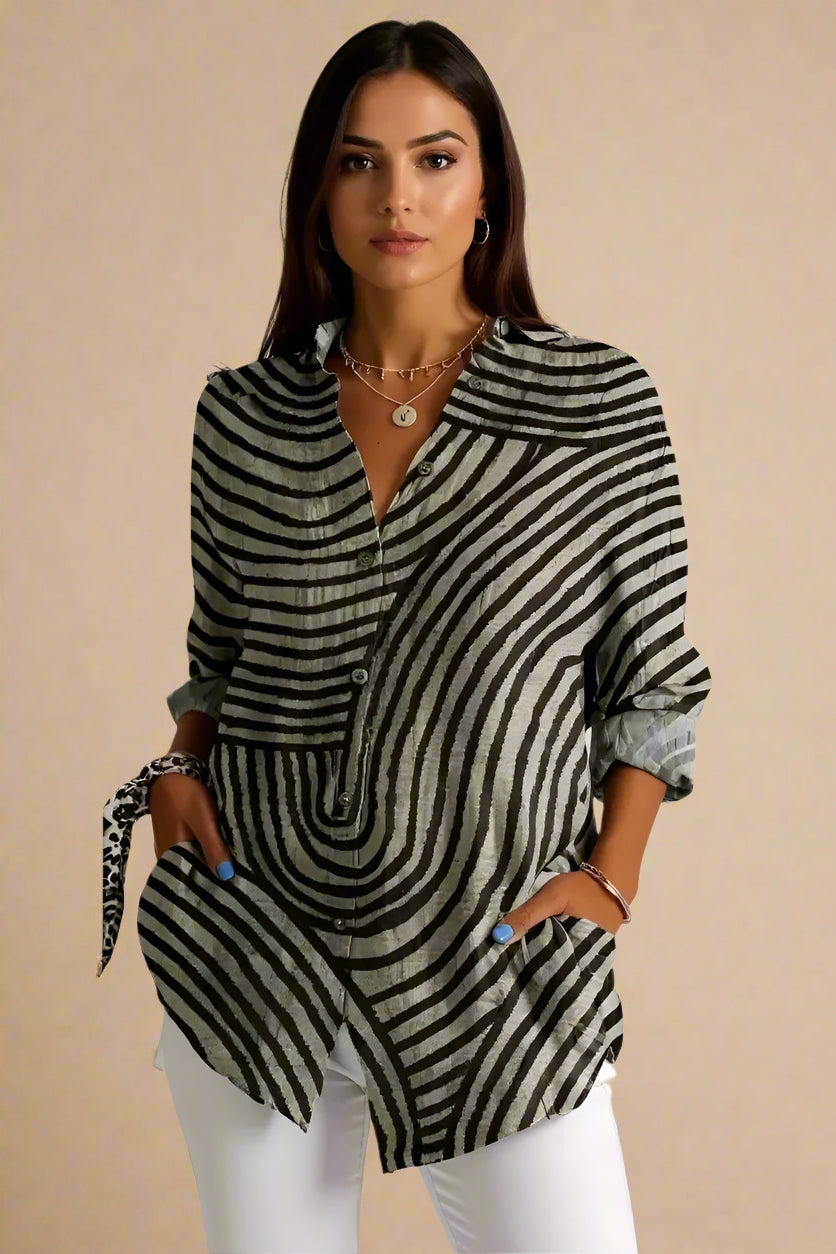 Maja blusen | Langærmet skjorte med grafisk mønster og moderne snit