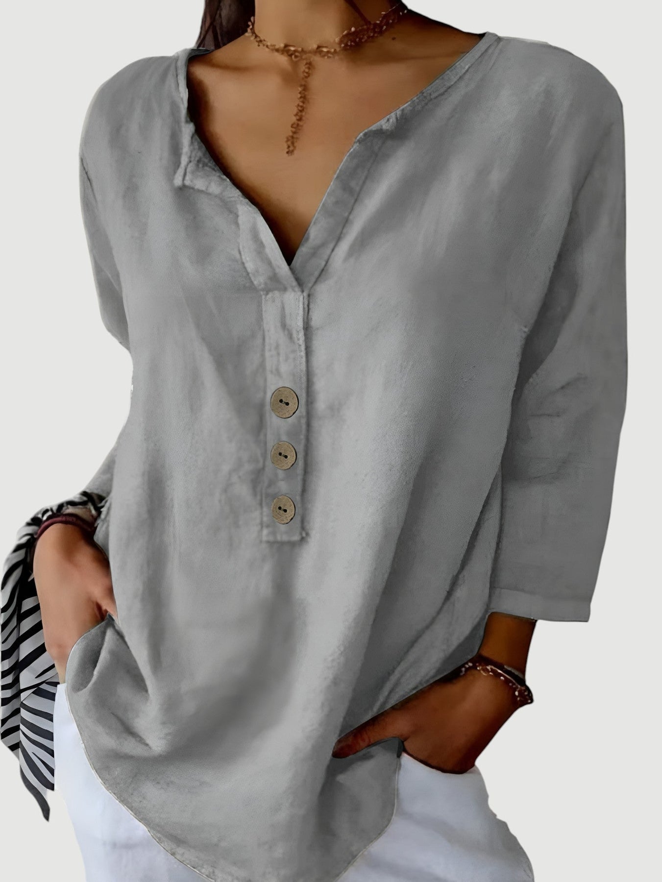 Luna-toppen er lavet af åndbart hør, som føles blødt og holder dig kølig på varme dage. Den løstsiddende pasform gør den nem at bevæge sig i, uden at den strammer. Uanset om du skal på stranden, gå en tur eller nyde en middag, passer denne top til både krop og anledning.